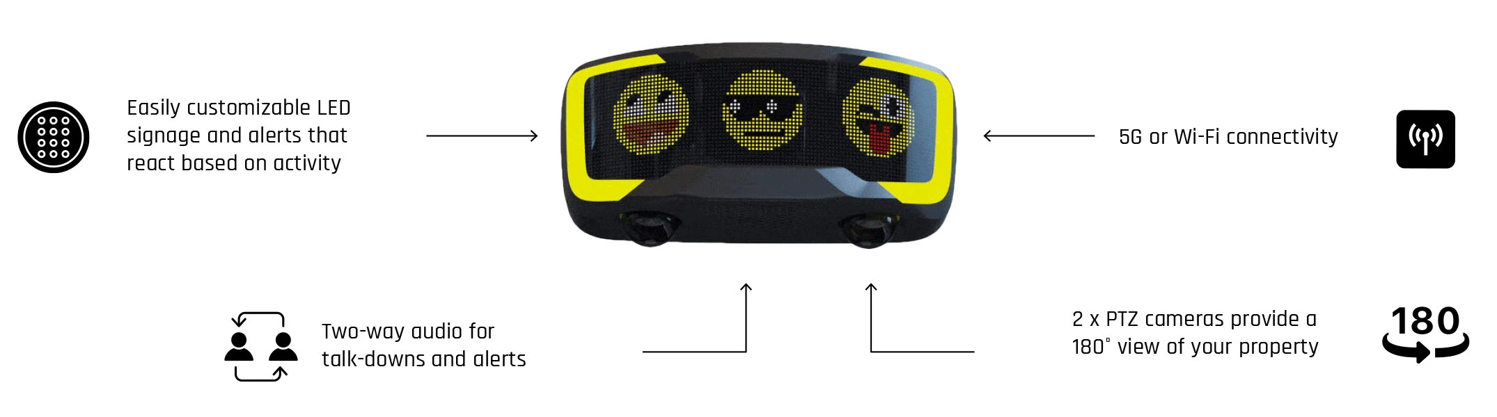 • 110 dB speakers and enhanced microphones for powerful, clear audio deterrence